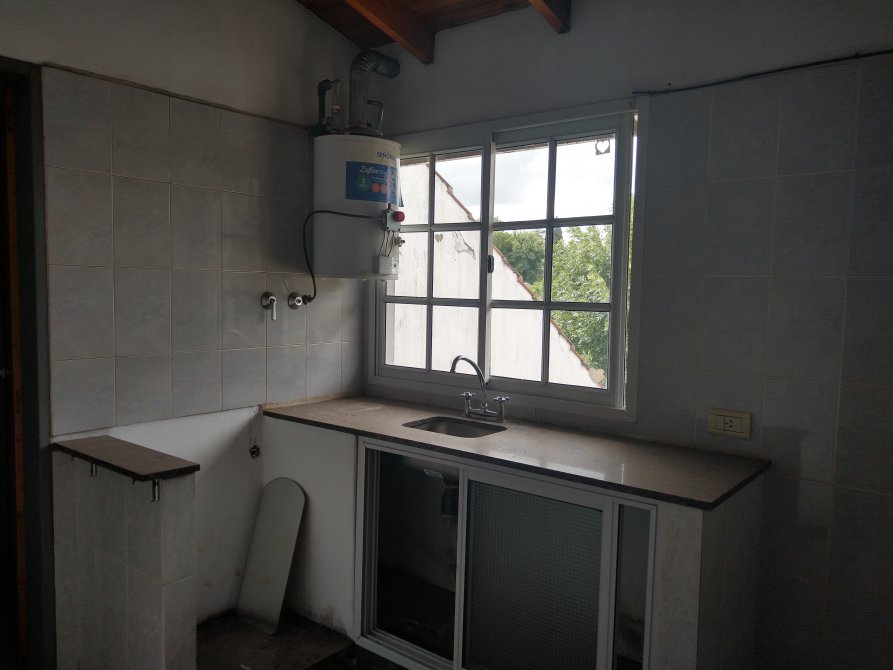 Cocina comedor con mesada de material, termotanque a gas, revestimientos ceramicos. -