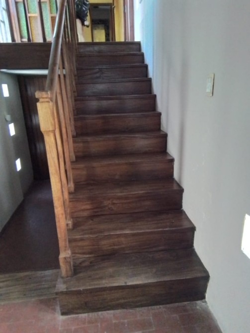 Escalera de madera que comunica con las habitaciones  y la cochera