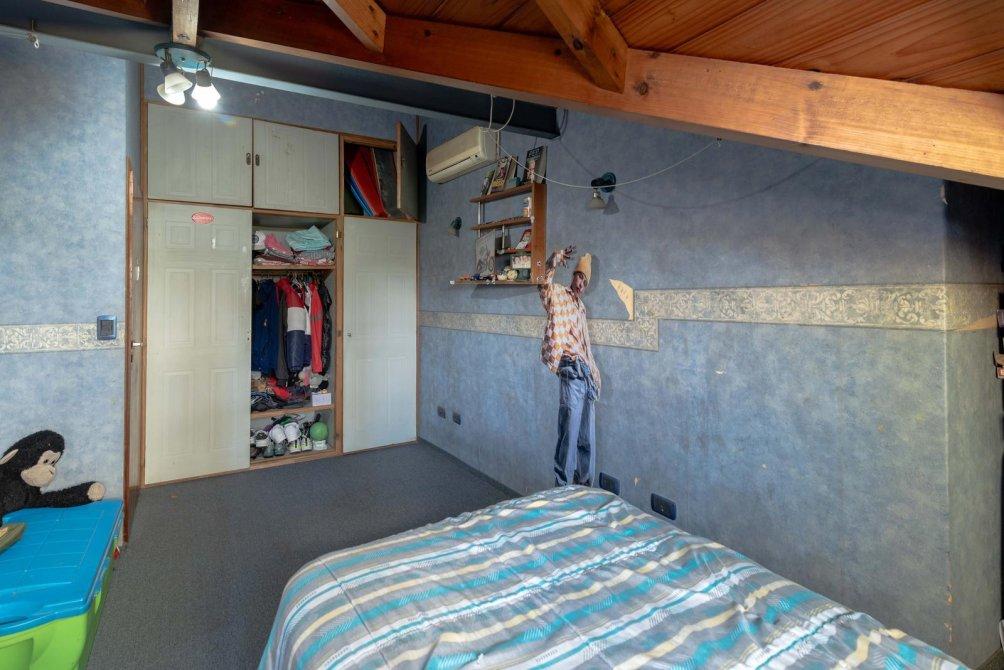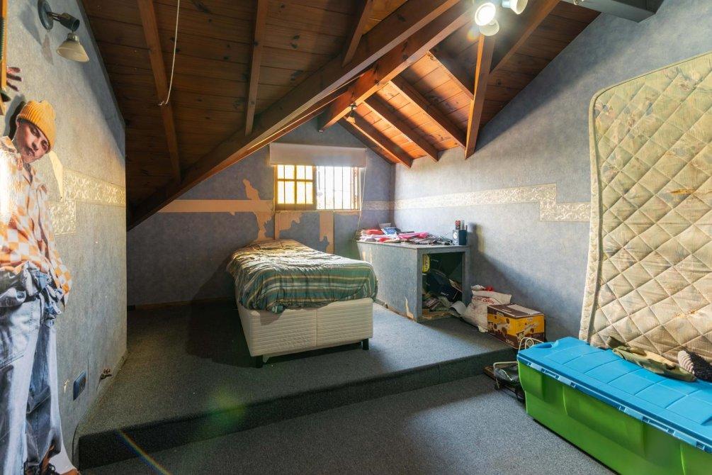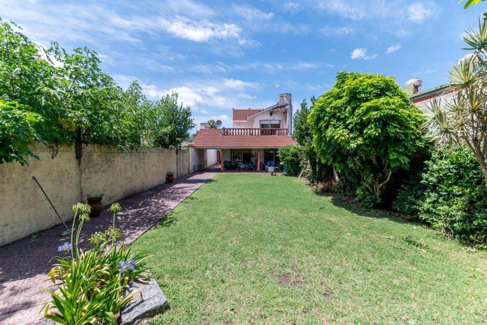 Este chalet dispone de cuatro dormitorios, dos en planta baja y dos en el primer piso, dos baños distribuidos también entre ambas plantas, cocina con salida al pasillo lateral semicubierto con lugar para estacionar varios vehículos, un living conectado al ingreso principal de la propiedad a la cual se accede desde la calle mediante el jardín frontal, un lavadero con salida a un amplio balcón en el primer piso con vista al patio trasero y, finalmente, dicho patio trasero de césped que cuenta en su sector posterior con parrilla y alero.