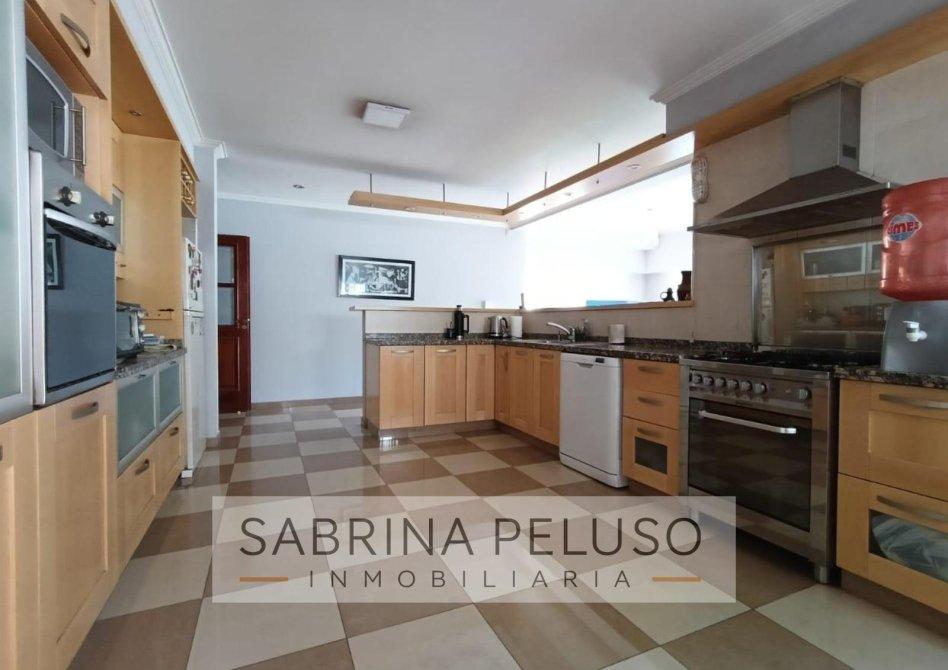 En planta baja, amplio living con espacio de bar ideal para reuniones, seguido de la cocina comedor dividida mediante una barra desayunadora, con mucho espacio de guardado y lavadero independiente.