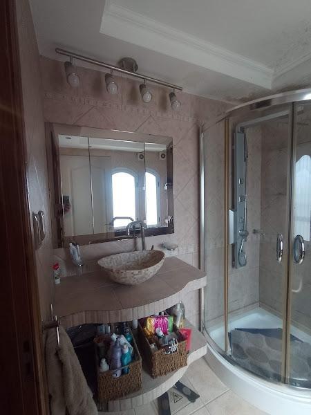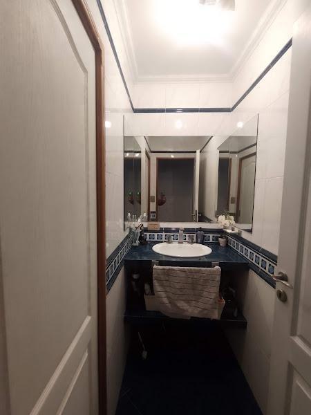 (con ante baño con mesada en mármol y pileta de cerámica de estilo.)
