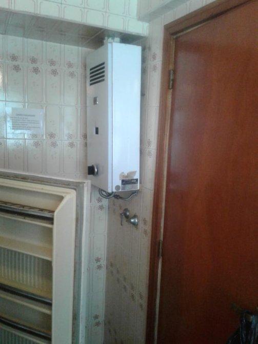Cocina: piso cerámica, mesada, mueble bajo mesada, art cocina y calefón.