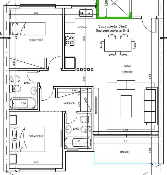 - 2 Dormitorios: Principal es Suite con Vestidor y el otro Dormitorio con Frente de placard.