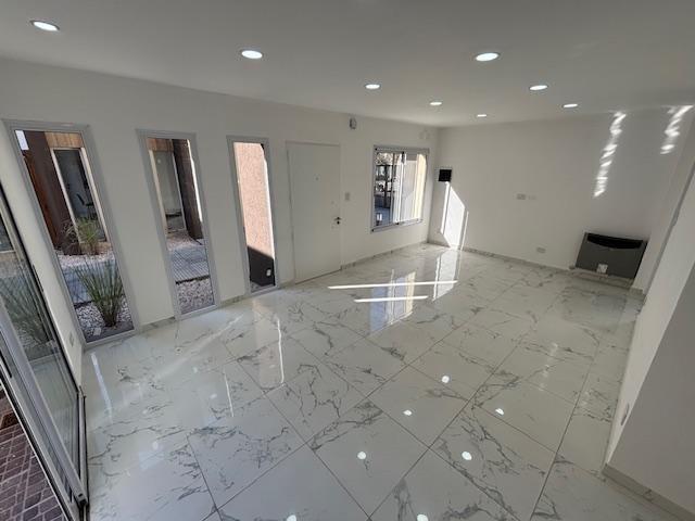 LIVING-COMEDOR AMPLIO Y LUMINOSO, PISOS DE PORCELANATTO SIMIL CALACATTA;