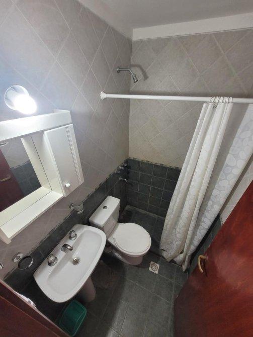 Ambiente con cocina semi integrada y baño completo.
