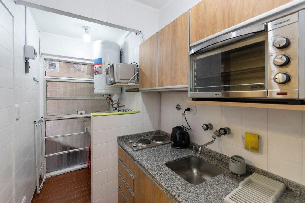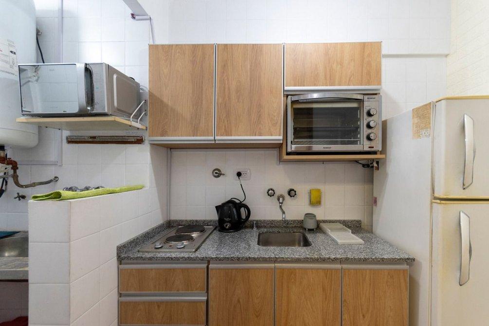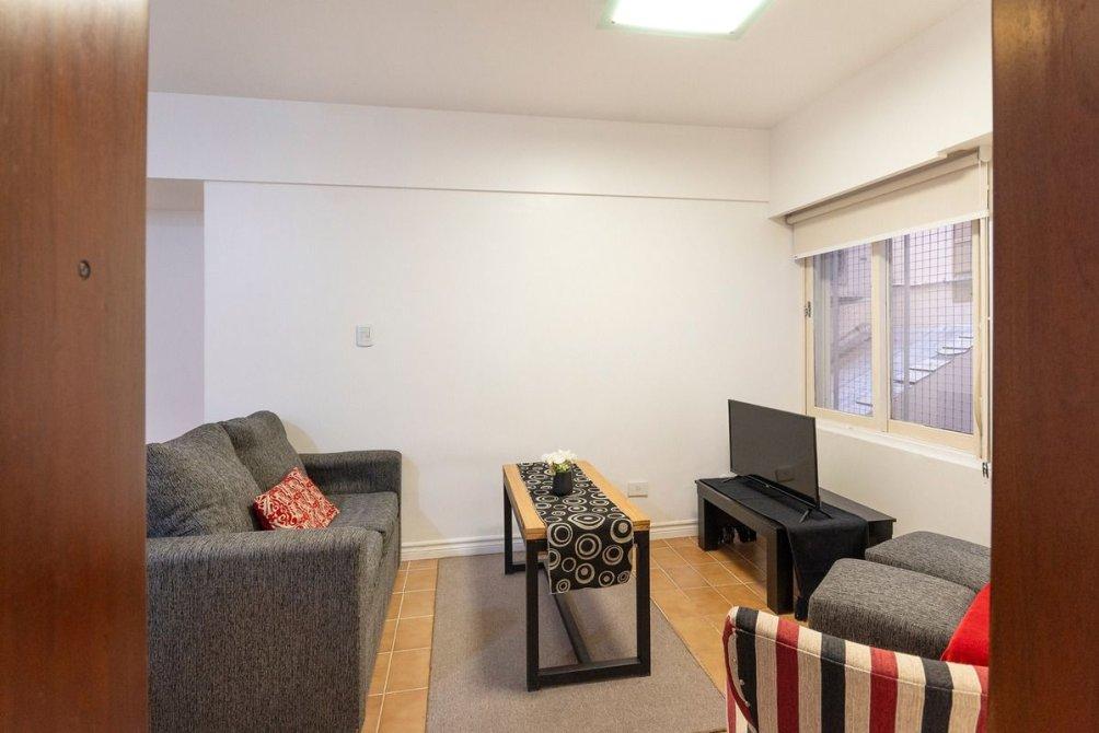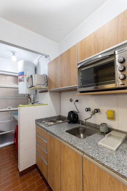 Departamento de 2 ambientes, de 33,55 m2. Living Comedor de 4,90x2,60 mts. aprox. Cocina con lavadero integrado. Baño con ducha todo nuevo y moderno. Muy buen estado. Todo pintado. Todo eléctrico. No tiene gas.