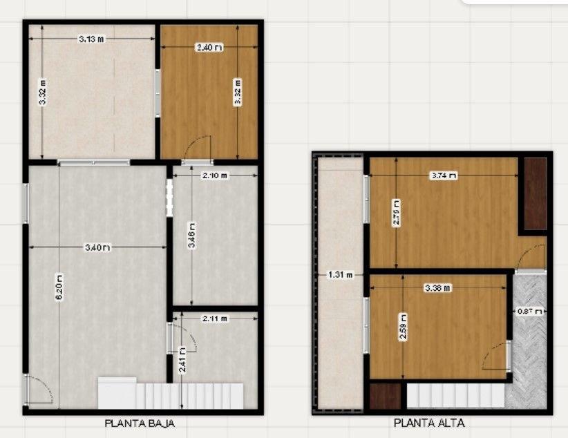 Planta Baja 48 m2 cubiertos aprox. mas 11 m2 descubiertos aprox. Living comedor en planta baja de 6,20 x 3,40 mts. aprox. Amplia cocina con comedor diario de 3,46x2,10 mts. aprox. Baño grande de 2,41x2,11 mts. aprox. Habitación en planta baja de 3,32x2,40 mts. aprox. y Patio descubierto de 3,20x3,14 mts. apox.