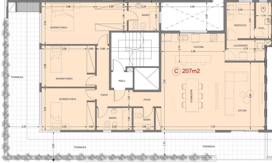Superficie total 207m2