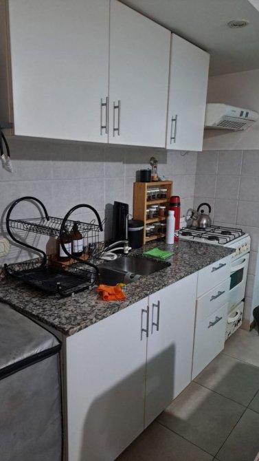 -Living comedor con cocina integrada, equipada con alacenas, mueble bajo mesada, artefacto de cocina y termotanque eléctrico.