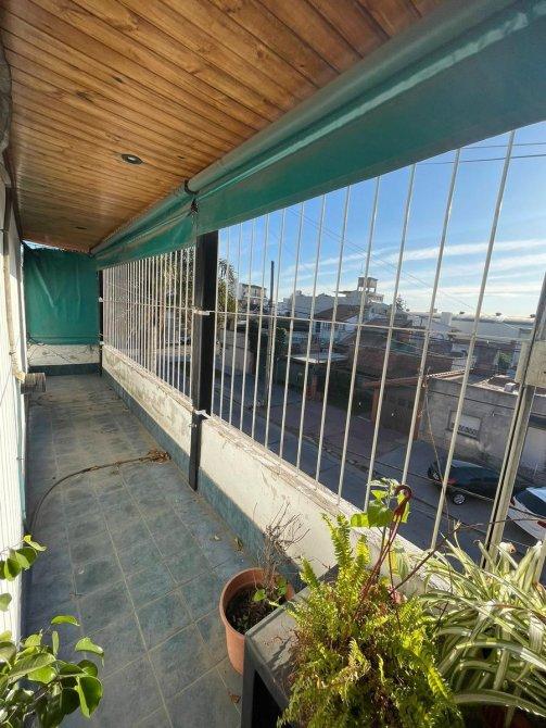 Al frente, el departamento posee un balcón corrido que abarca todo el ancho de la propiedad, otorgando una vista abierta y generosa entrada de luz natural.