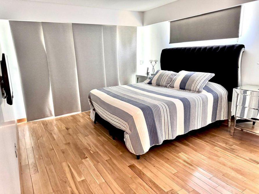 En planta alta: Dormitorio principal en suite, con importante vestidor de madera y puerta blindada, dos dormitorios, que comparten un vestidor central y un baño completo. mas un 4o. dormitorio,  amplias terrazas al frente y contrafrente, ideales para disfrutar de vistas despejadas.