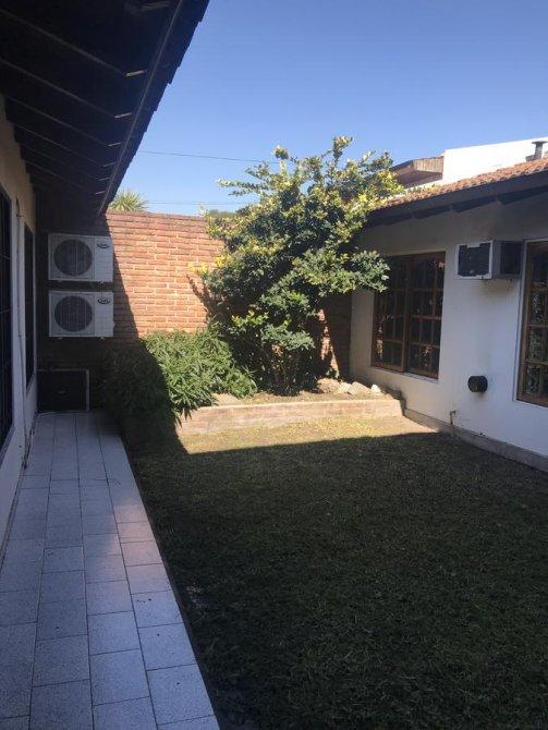 Jardín al frente con rejas, living comedor, cocina comedor diario,3 dormitorios con placard,toilette, 1 baño completo,lavadero cubierto, garage para 1 auto, quincho,parrilla, fondo libre.