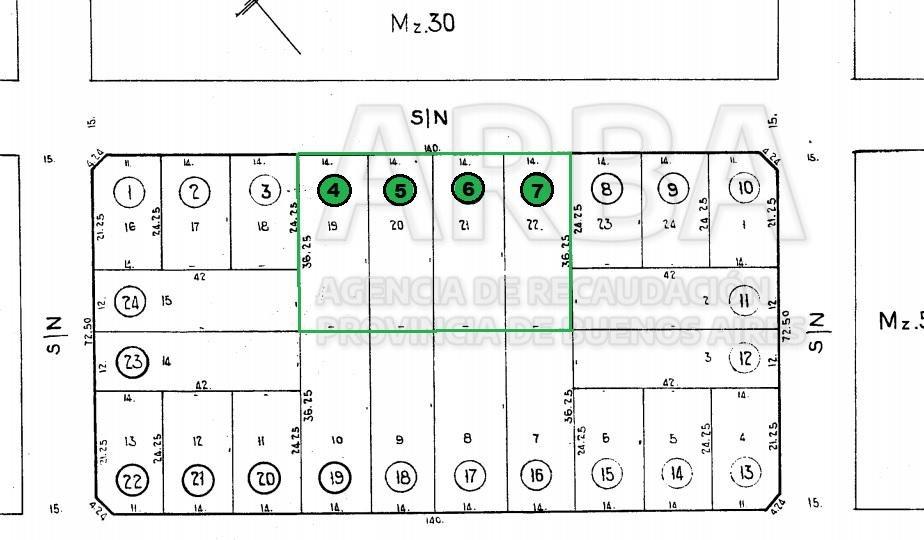 Superficie total de 2030 m2 - 56 mts. de frente (4 lotes de 14 x 36.25)