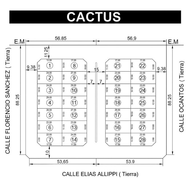 • Dimensiones de los lotes: 10 x 20 metros