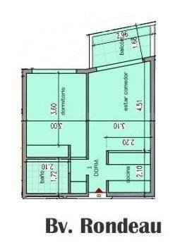Sobre Bv Rondeau esquina Sorrento con orientación al norte y oeste, es un edificio que contará con PB y 6 pisos conformado de cuatro monoambientes, dos de un dormitorio, uno de dos dormitorios y uno de tres dormitorios.