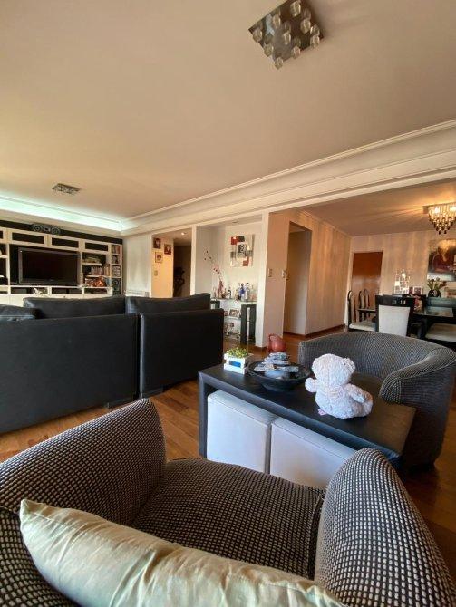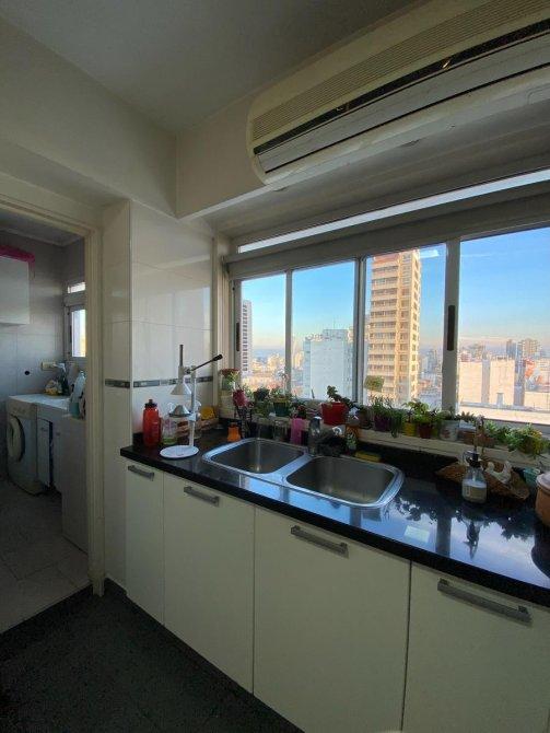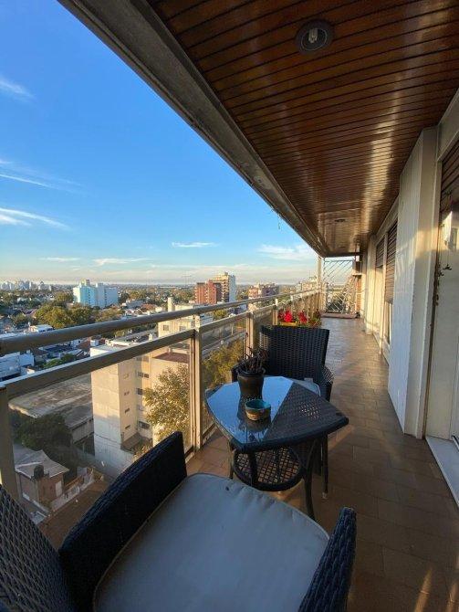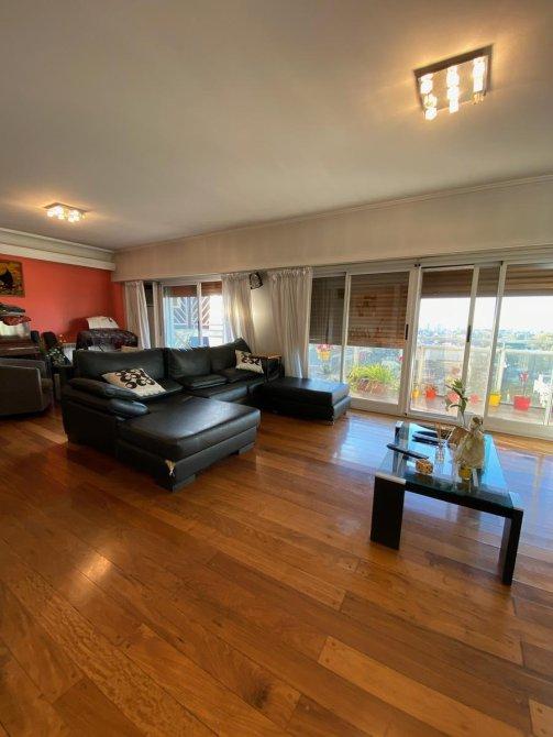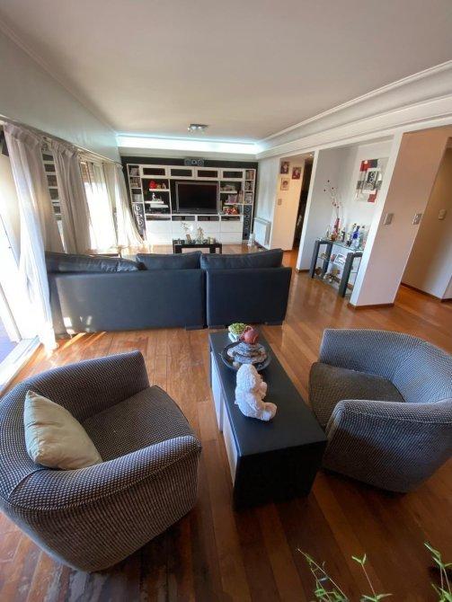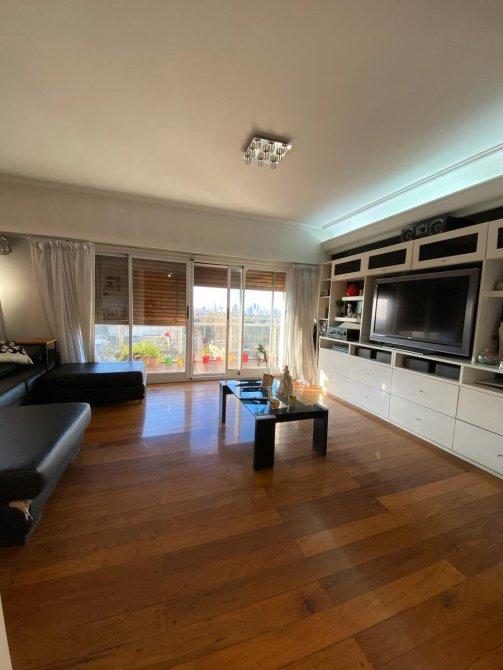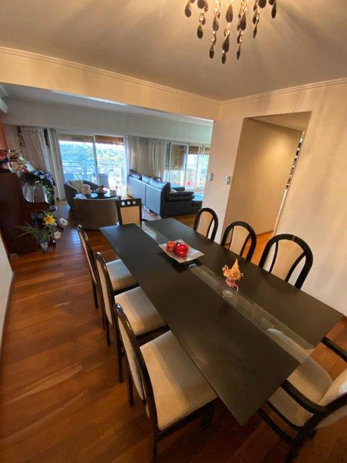 Consta de entrada principal y de servicio, palier privado, hall de recepción, Amplio estar comedor en L con vista panorámica con ventanales que dan salida al balcón corrido con orientación Norte (pisos de madera). Toilette de recepción. Cocina totalmente modernizada con amueblamiento de bajo y sobre mesada ( marca Johnson) , comedor diario, lavadero (separado de la cocina). Habitación de servicio con baño privado. 3 dormitorios (el principal en suite con vestidor). Baño completo reciclado. DEPARTAMENTO CON DOBLE CIRCULACIÓN, entrada de servicio,  MUY LUMINOSO