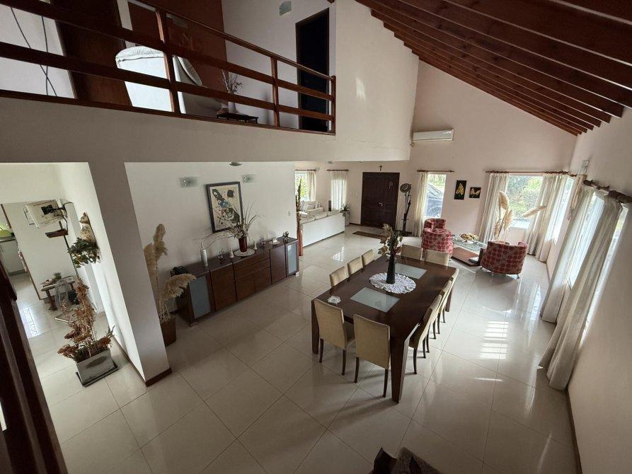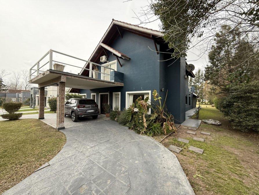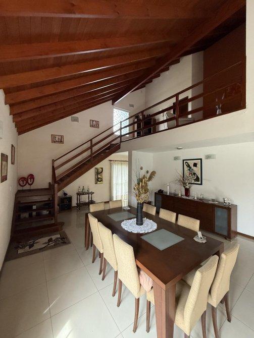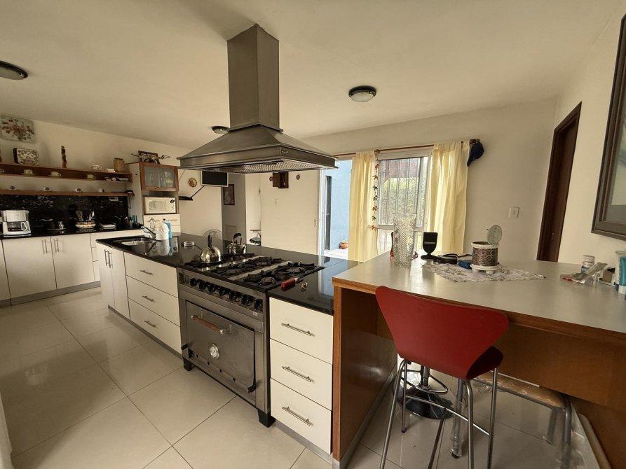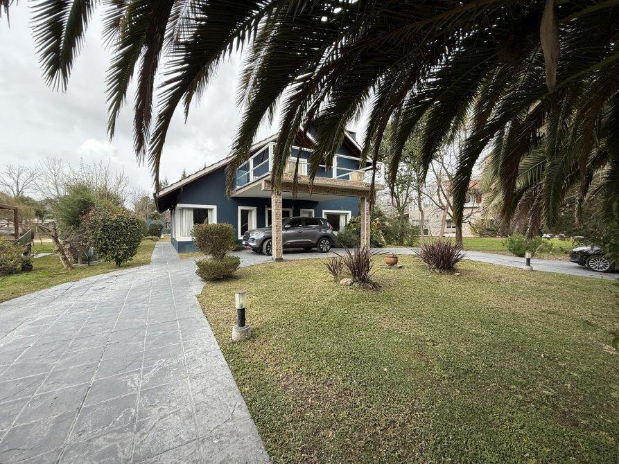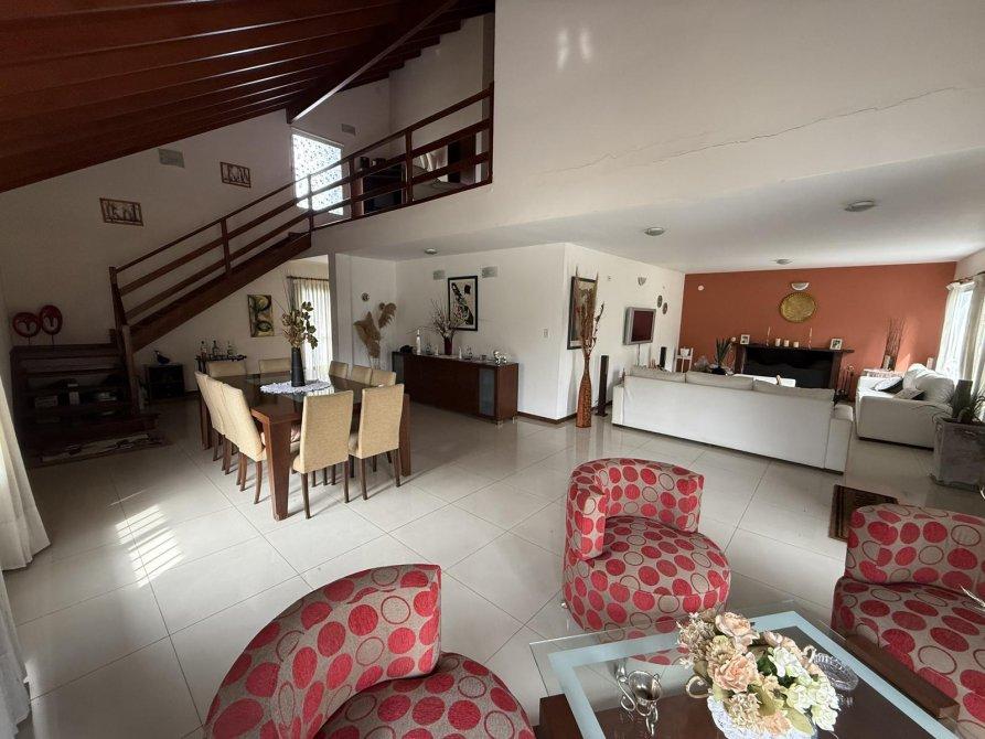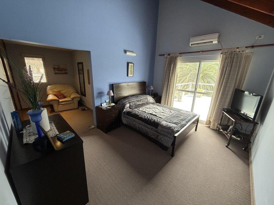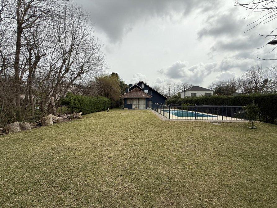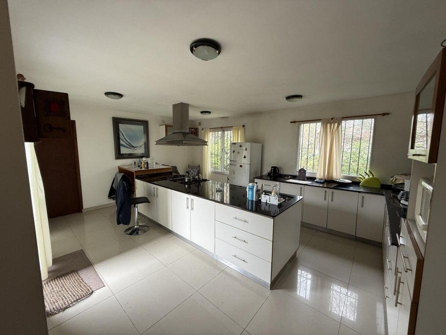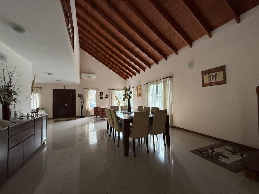 Retiro al frente e ingreso pasante para varios vehículos. Gran living comedor, cocina comedor diario con isla, lavadero independiente, dormitorio en planta baja y baño completo. Parque amplio con piscina de material (10 x 4 m) con solárium. Quincho equipado con parrilla, baño y cerramientos vidriados con vista al jardín.