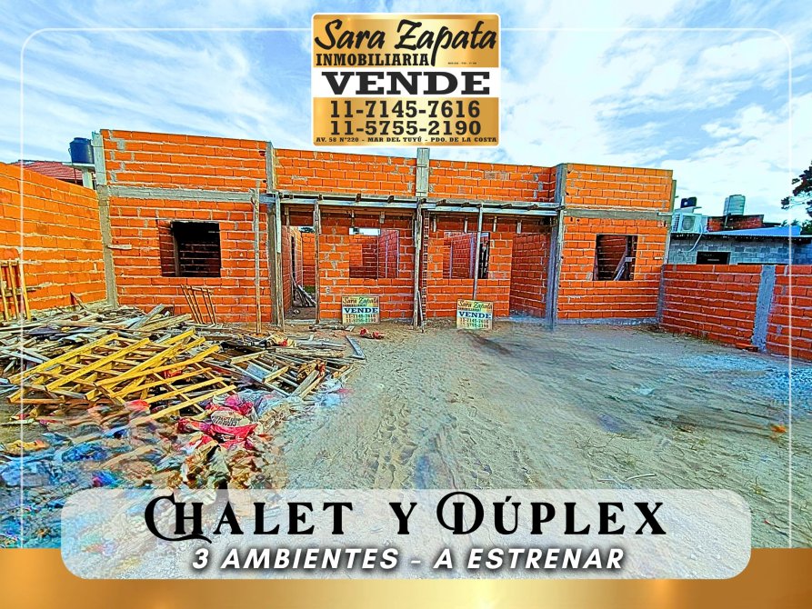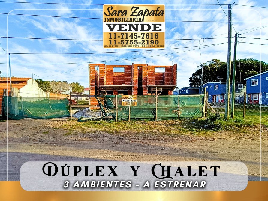 CALLE 55 e/4 y 5 MAR DEL TUYU CHALET y DUPLEX 3 amb A ESTRENAR VENDE SARA ZAPATA Inmobiliaria