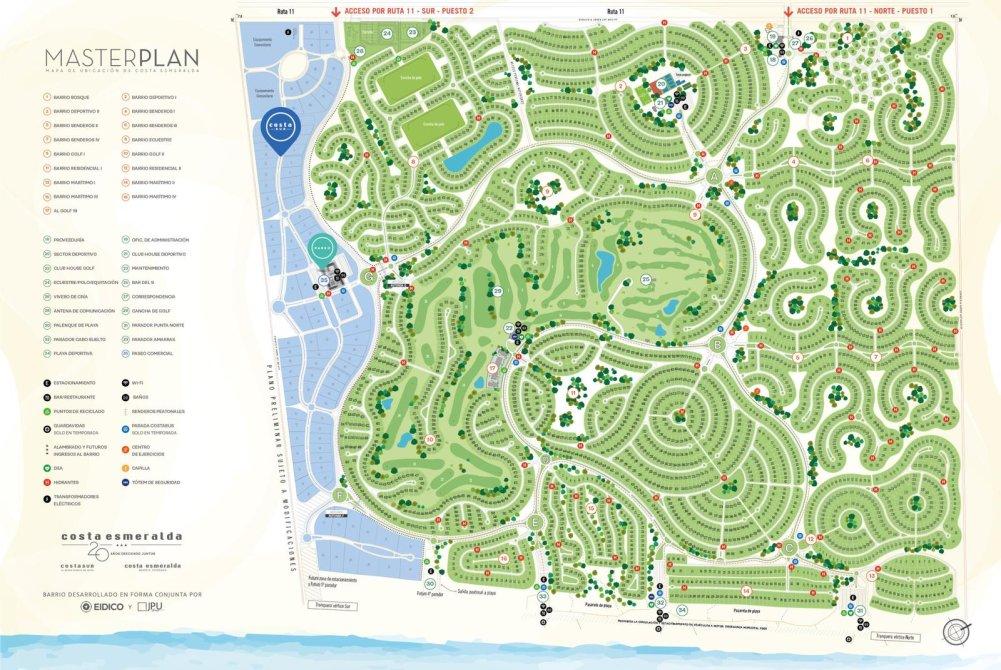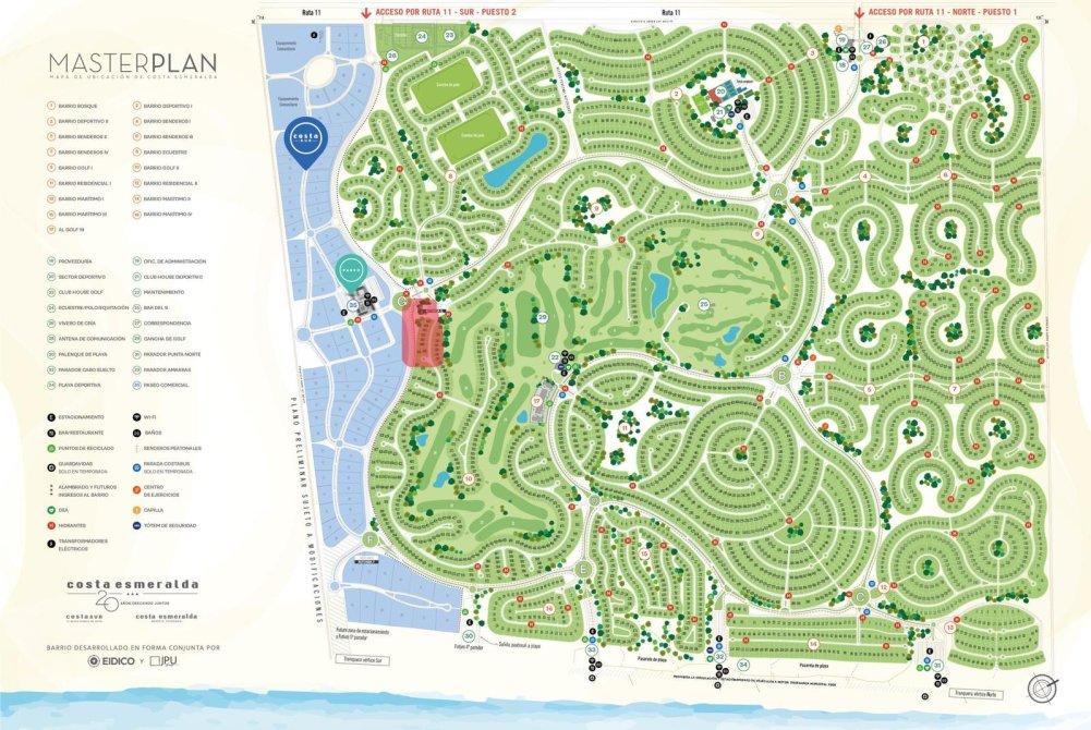 Costa Esmeralda es un emprendimiento consolidado sobre la Ruta 11, que cuenta con seguridad 24 hs, cancha de golf, tenis, fútbol, gimnasio, playa privada, paradores y una amplia propuesta comercial y recreativa.
