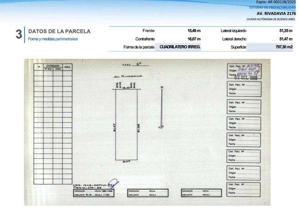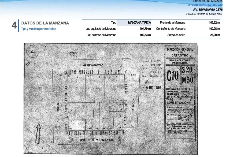 Importante lote en Av Rivadavia 2100, con orientación frente al Norte, entre las calles Pasco y Rincón, en el barrio de Balvanera, Comuna 3.