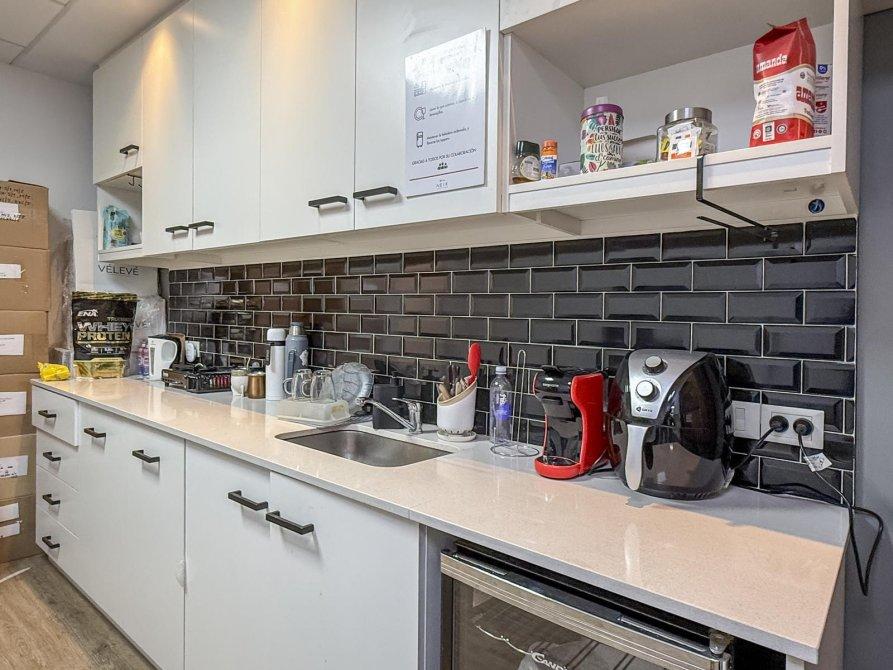 Hoy se encuentra dividido en 3 ambientes con 2 oficinas cerradas y cocinas separadas. Se puede volver a abrir y hacer la planta toda abierta. Tiene 2 cocinas y 2 baños.