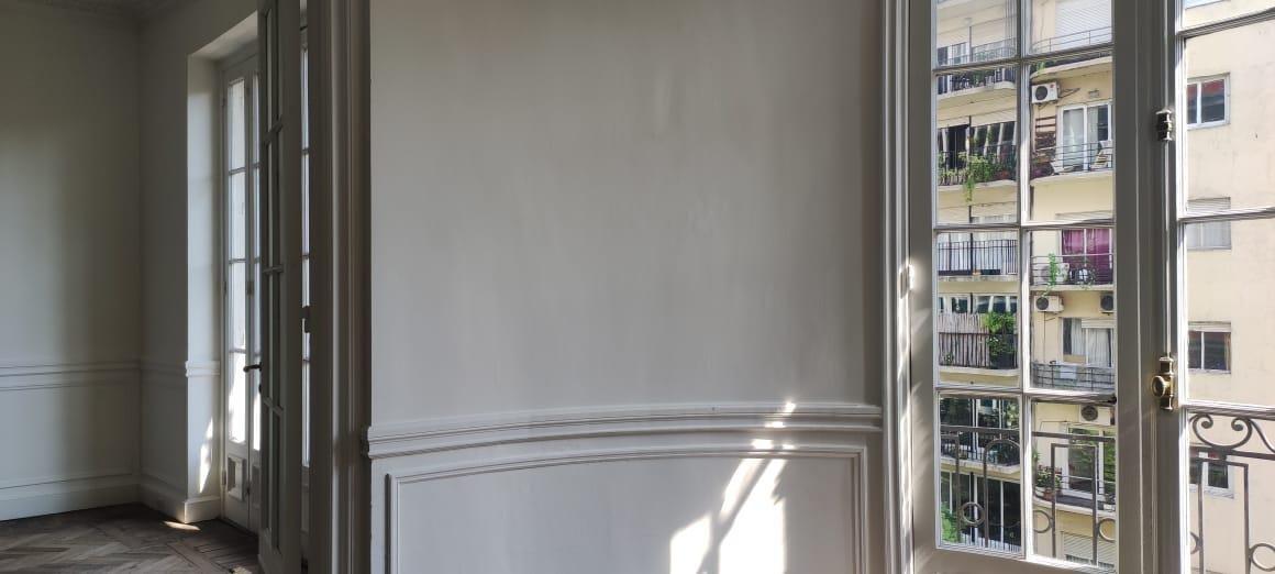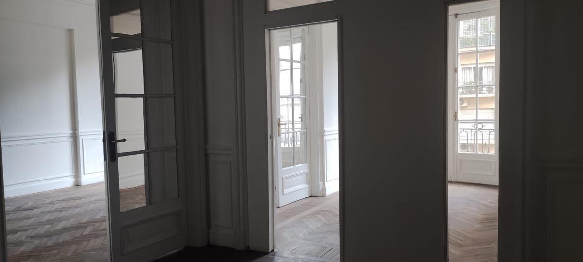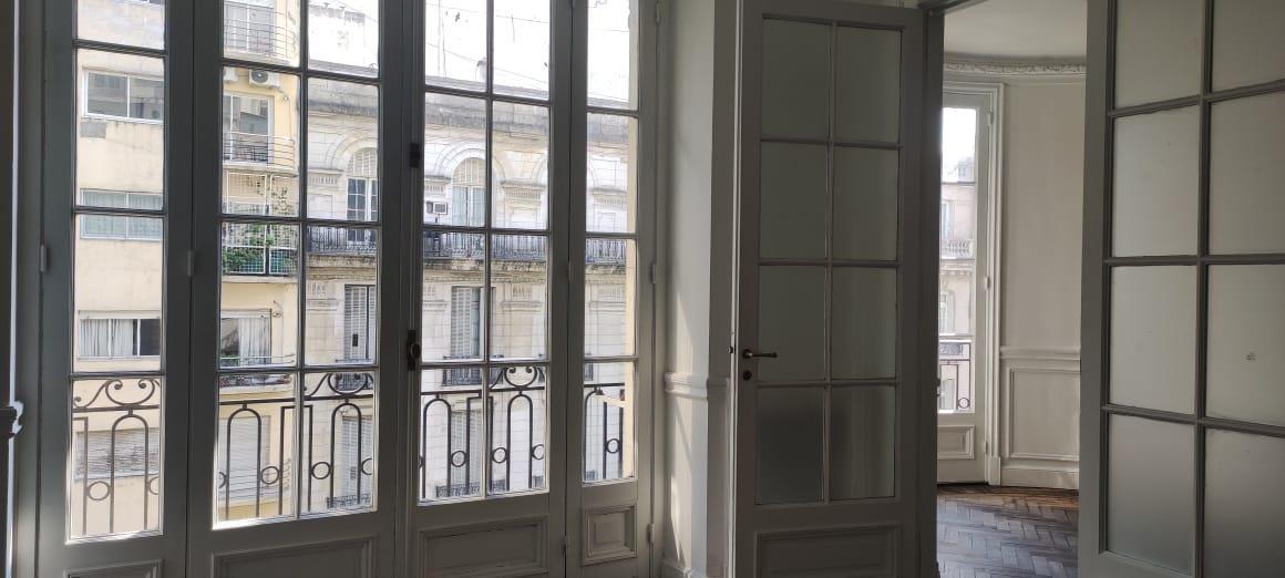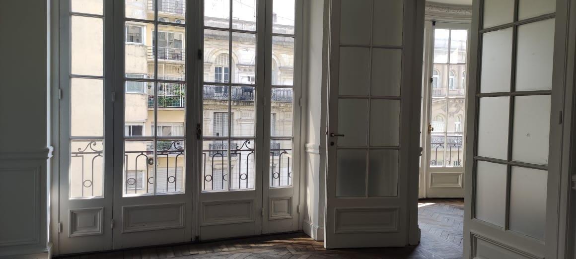 Edificio estratégicamente  ubicado a pasos de Plaza San Martín, en el barrio de Retiro. Amplio hall de entrada y recepción, balcón francés en los dos ambientes que dan al frente, pisos de Roble de Eslavonia y techos altos. Ambientes super amplios.  4 dormitorios.  2baños, toilette y cocina. Doble circulación, ascensor principal y de servicio.