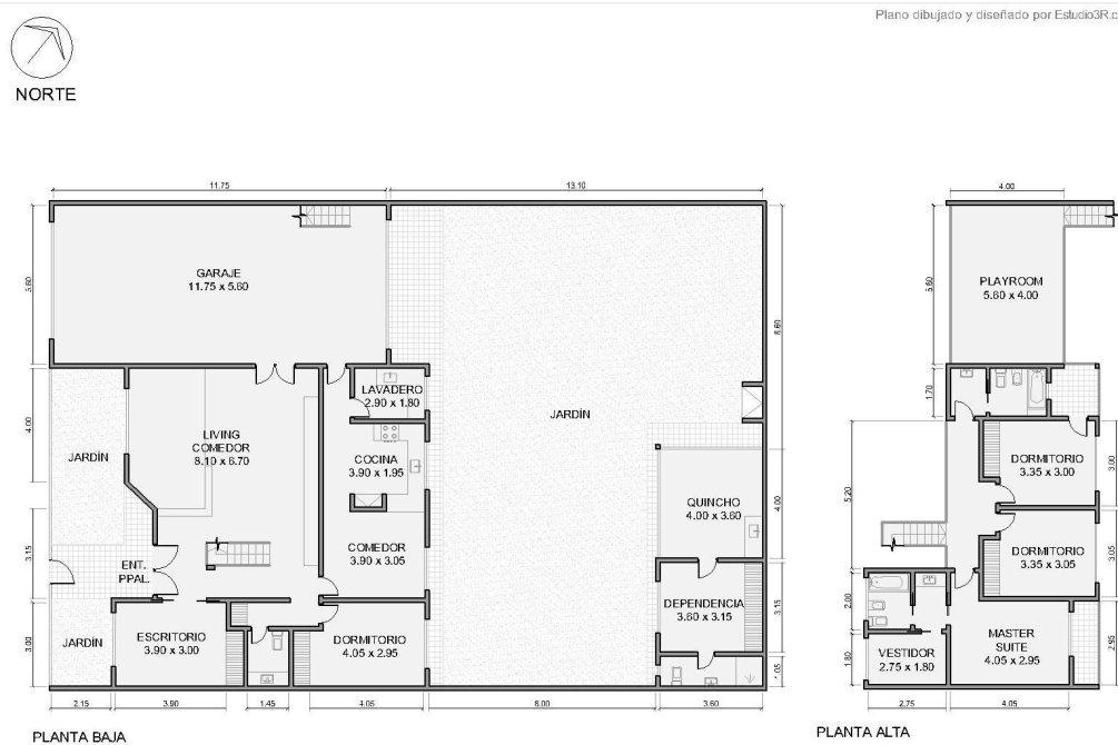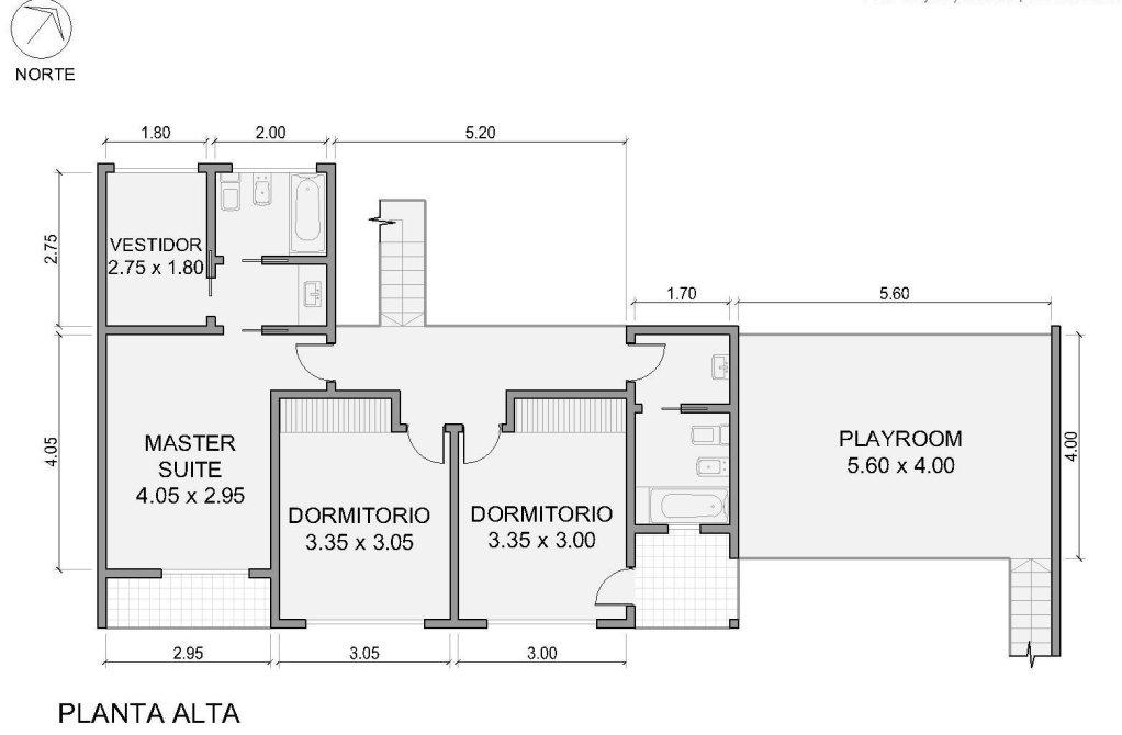 En Planta Alta: 2 dormitorios con placard que comparten 1 baño. 1 dormitorio en suit, con vestidor.