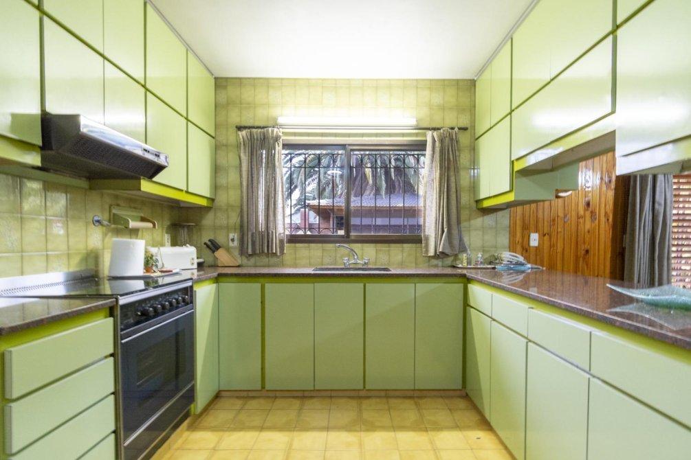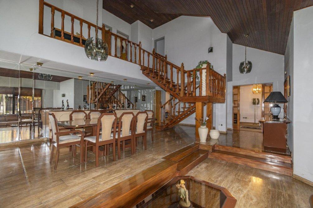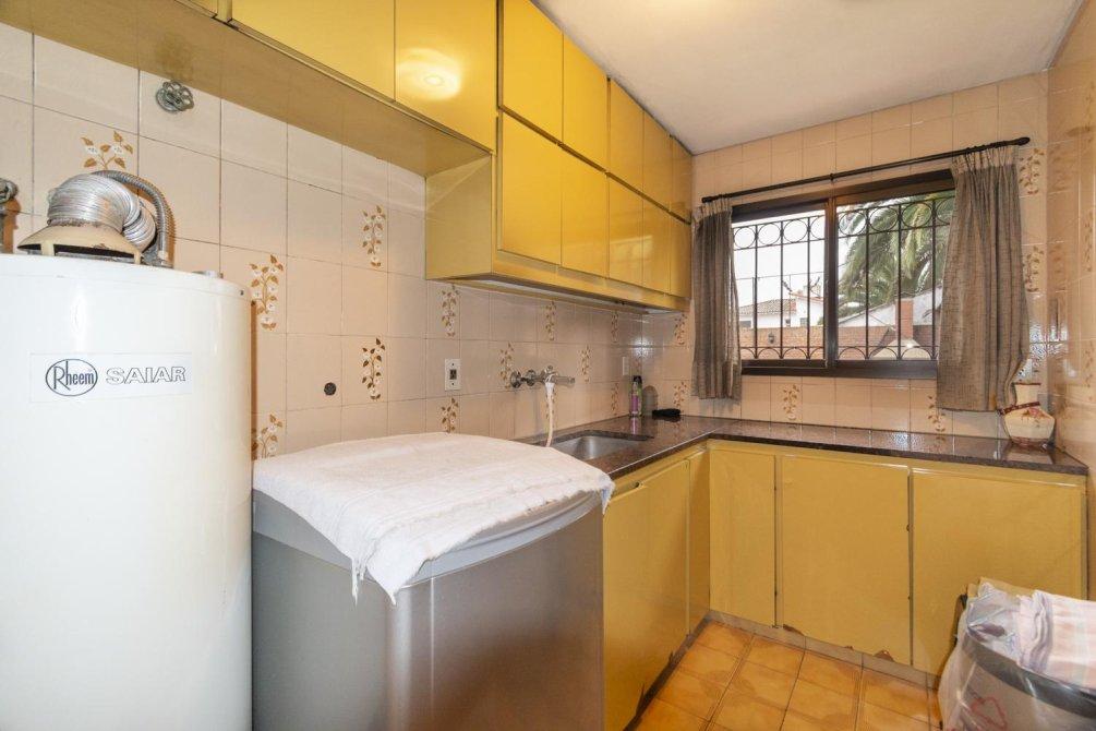 Planta Baja: Cocina con bajo mesadas y alacenas, comedor diario, lavadero con bajo mesada. Living comedor amplio con techos doble altura y en desnivel, con pisos de mármol combinados con madera.