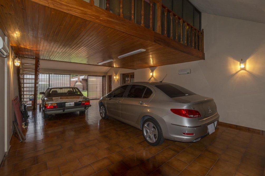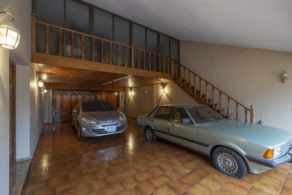 Gran garaje cubierto para 4 autos y un entrepiso en el mismo que funciona como playroom.