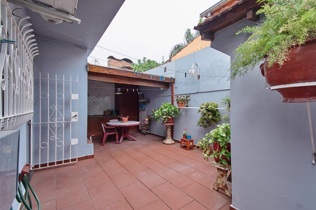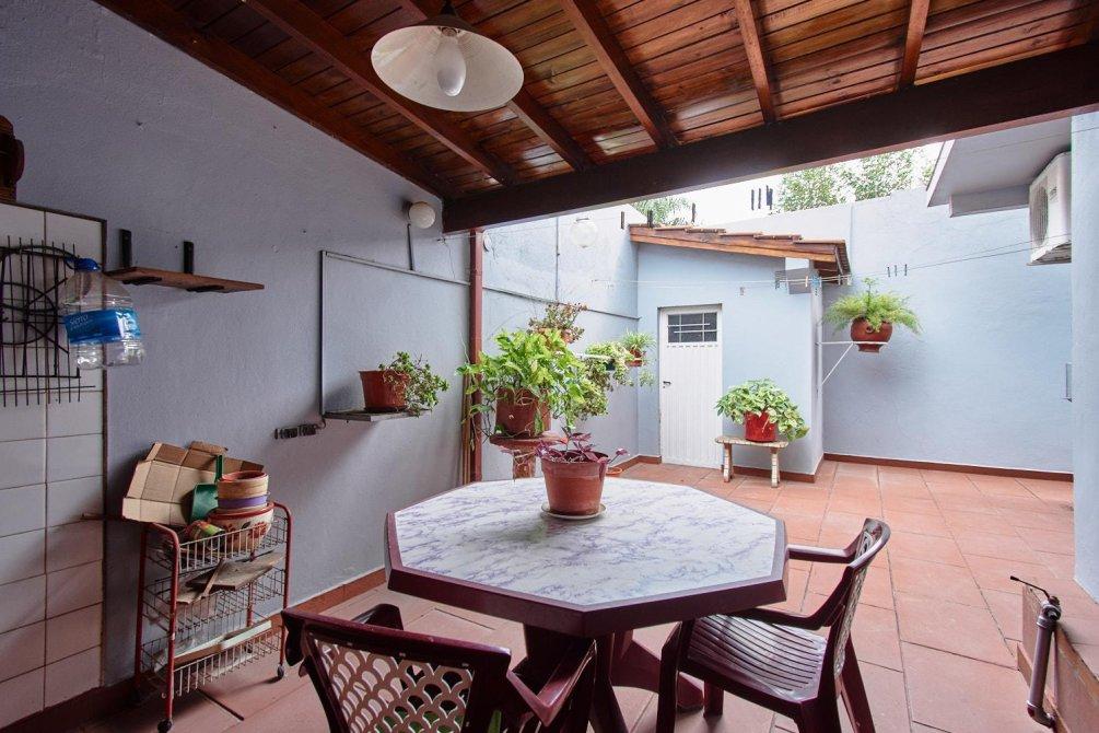 El patio se combina con un quincho equipado con parrilla, y un cuarto de guardado.