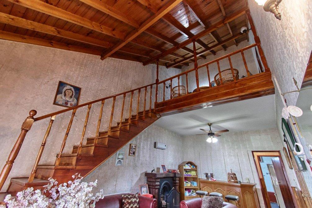 Subiendo por la escalera, llegarás a la planta alta, donde encontrarás una sala de recepción y tres dormitorios espaciosos y luminosos, cada uno con su propio placard.
