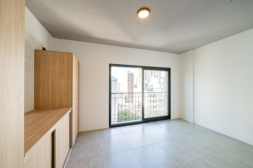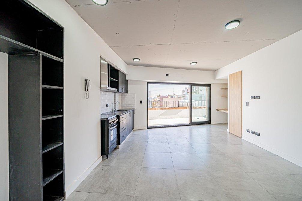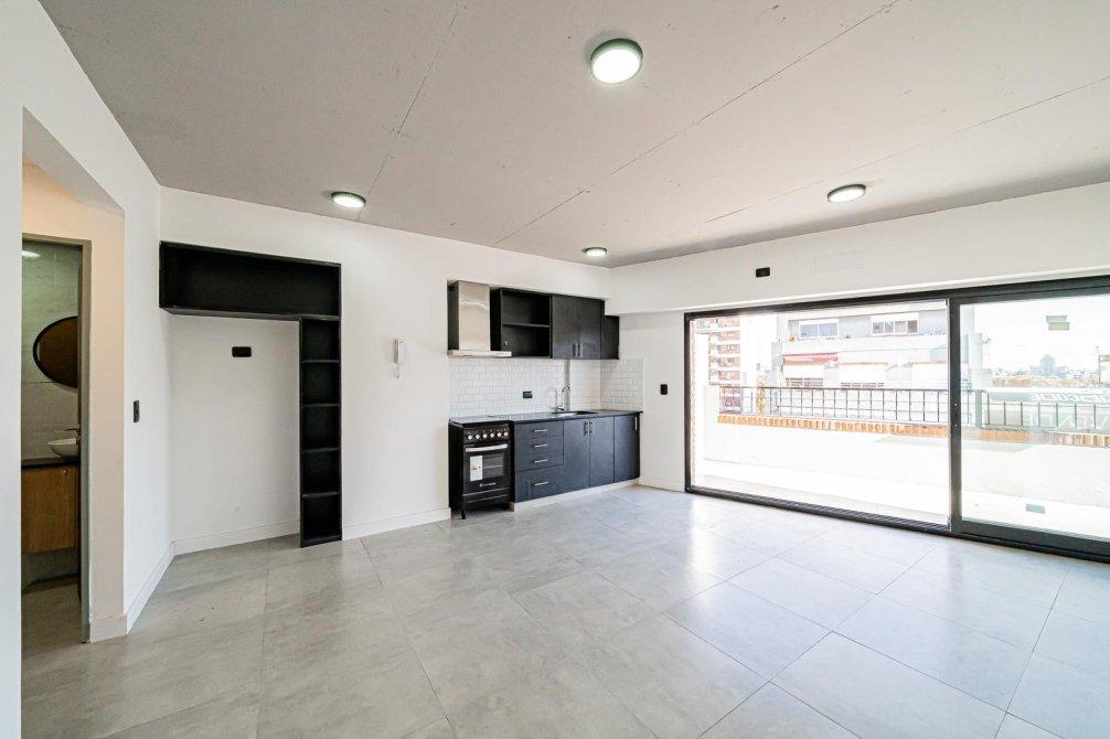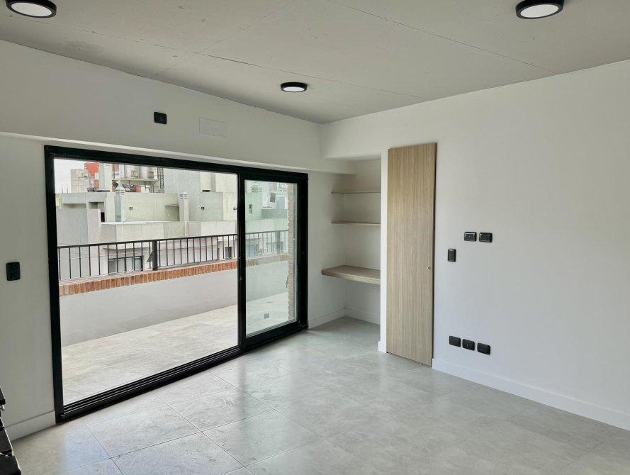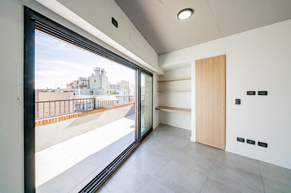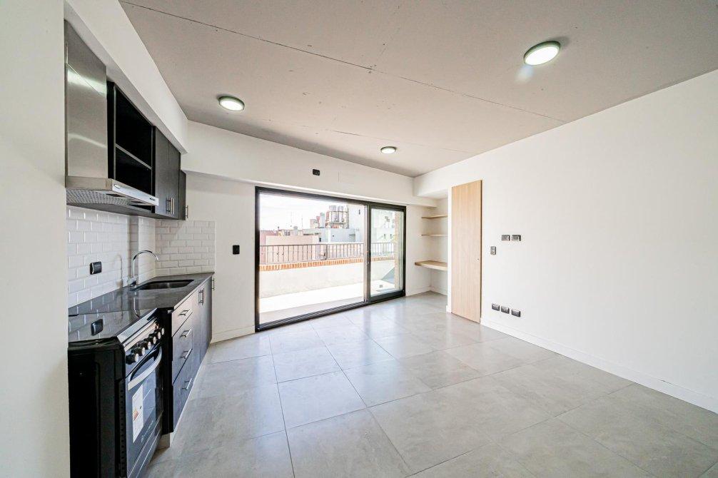Departamento a estrenar ubicado en una de las zonas más atractivas de Caballito. Living comedor con cocina integrada, toilette, balcón terraza de 18 m² que recorre todo el frente del departamento, dormitorio en suite con balcón francés al contrafrente. Ventilación cruzada natural y luz natural todo el día.