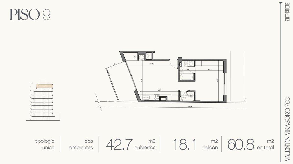 El edificio cuenta con 17 unidades en total, 16 de ellas de 2 ambientes y un monoambiente tipo loft. Además, dispone de dos cocheras en planta baja. Consultá por disponibilidad de otras unidades.