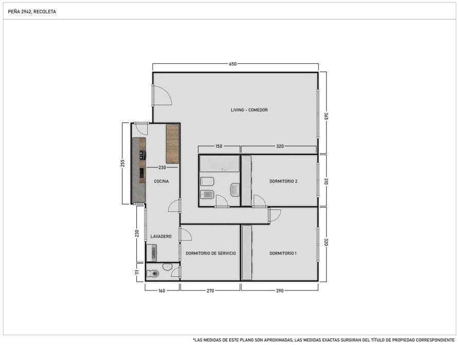Las medidas, superficies y expensas consignadas en la presente son aproximadas; y al solo efecto orientativo. Los datos definitivos son los que surgirán del título de la propiedad y de los comprobantes respaldatorios.