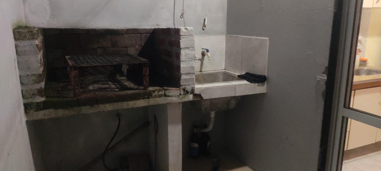 lavadero con pequeña parrilla y espacio para estacionar vehículo.