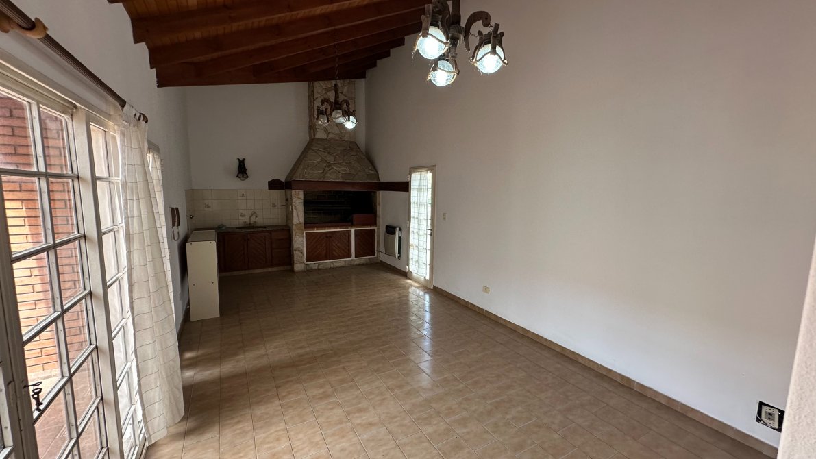 Desde el jardín de invierno se accede al quincho cubierto, totalmente equipado con parrilla, calefactor, mesada con pileta y baño completo.