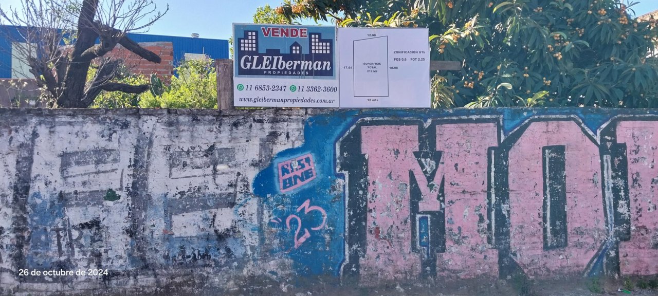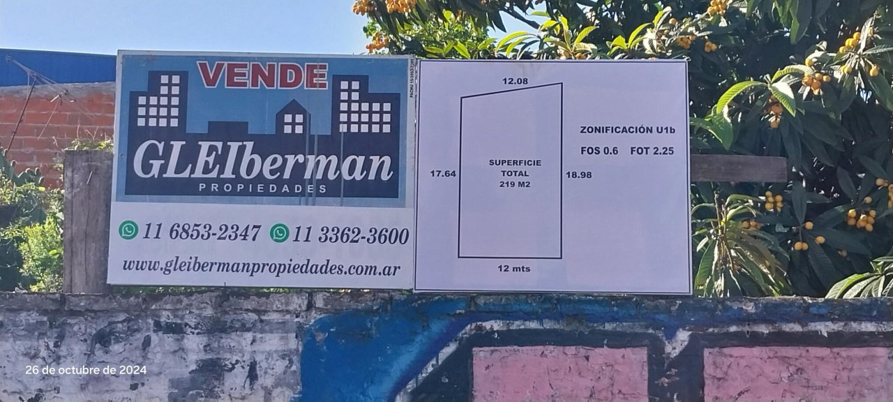 Lote buena ubicación. 12 mts. de Frente. Superficie 219 m2. A Metros de Av Monseñor Bufano (ruta 4)
