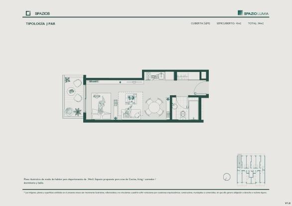 Superficie total 34m2