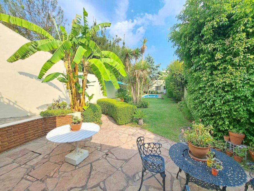 Lavadero y terraza con vista al jardín, que podría adaptarse para una tercera habitación.