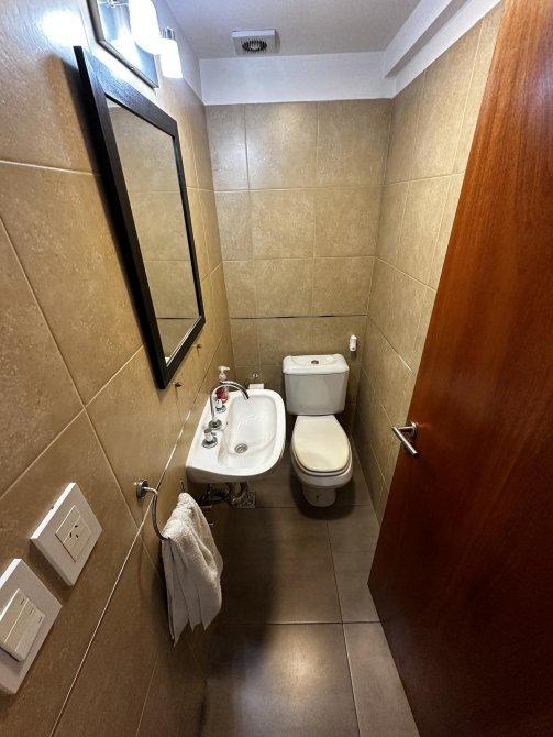 toilette, baño completo y dos dormitorios con placard, uno de ellos con balcón al contrafrente.