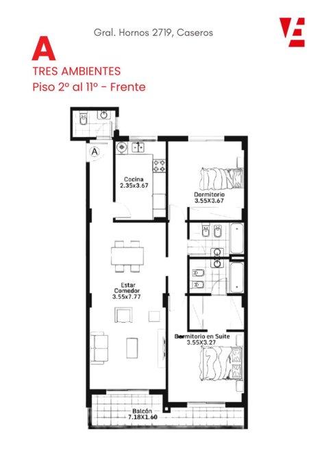 Estas modernas unidades de 3 ambientes ofrecen un espacio ideal para disfrutar de la comodidad y el estilo. Al ingresar, serás recibido por un amplio living comedor que se conecta con una cocina independiente, equipada con muebles bajo mesada y alacena, mesada de granito, bacha de acero inoxidable y grifería monocomando. Desde la cocina, tendrás acceso a un encantador balcón, perfecto para relajarte al aire libre.