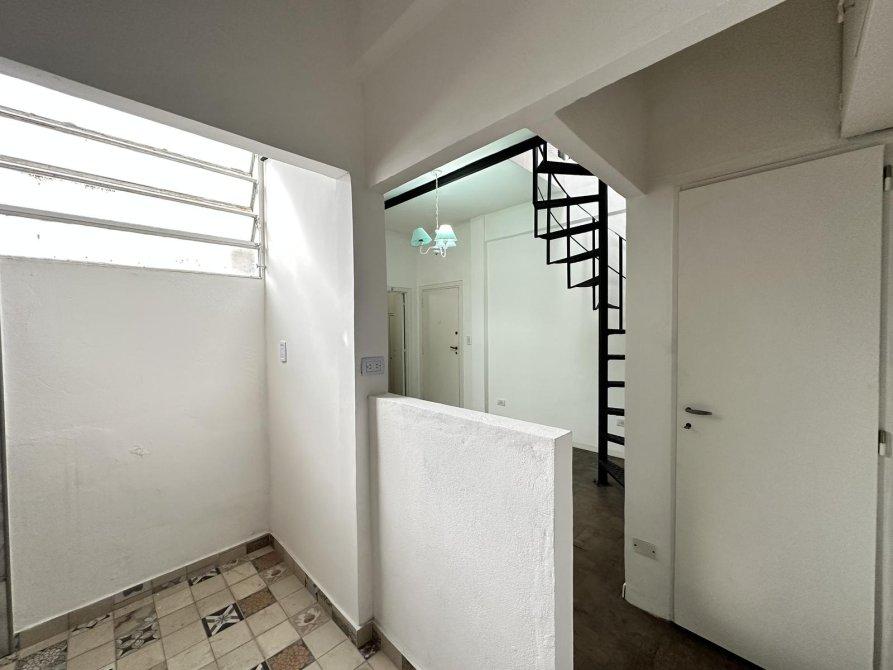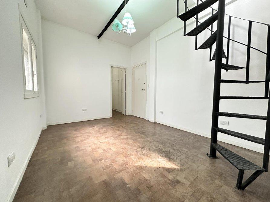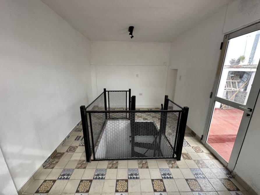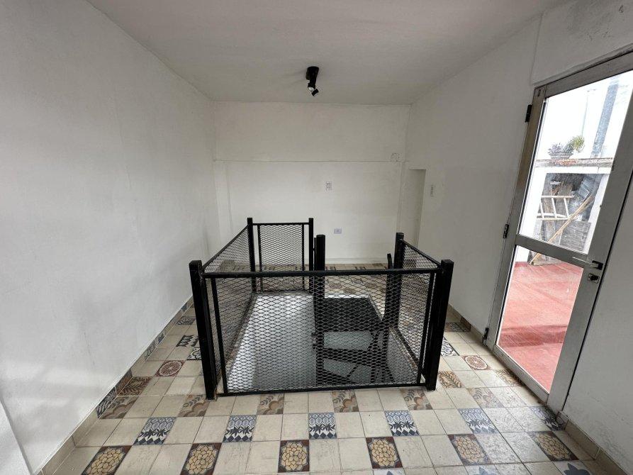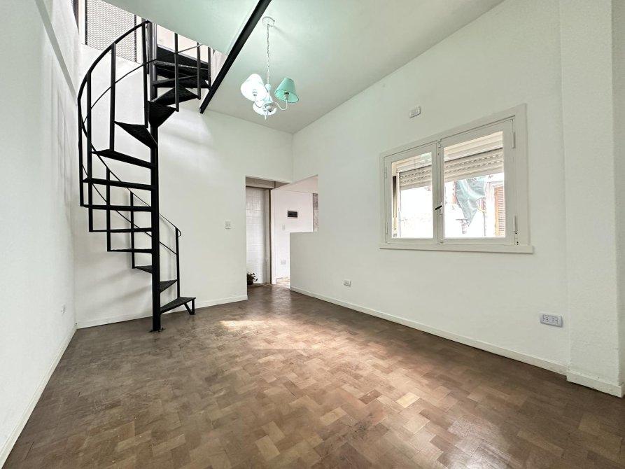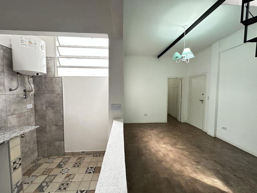 Departamento de dos ambientes en primer piso por escalera distribuido en dos plantas, en planta baja cuenta con living-comedor, cocina semi-integrada, dormitorio y baño.