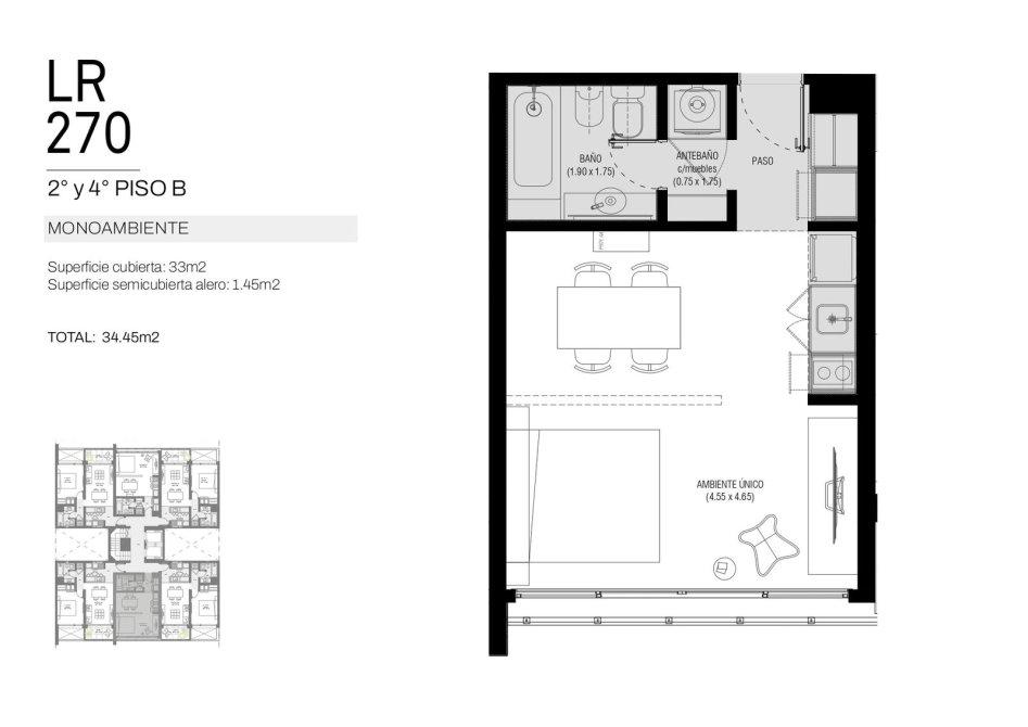 El edificio contará con 8 pisos, con 6 unidades por planta de uno y dos ambientes, y en el 8° piso unidades exclusivas de tres ambientes, todas con balcón privado que garantiza luz natural y ventilación.