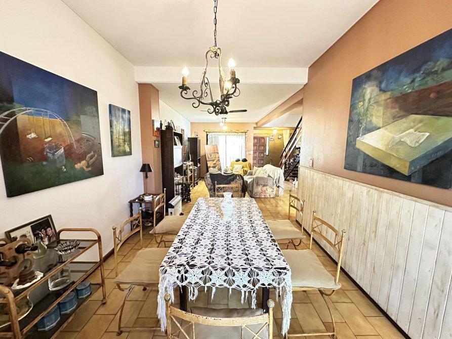El mismo se distribuye en dos plantas y posee en planta baja con cochera al frente e ingreso a un comodo living, comedor, cocina separada con espacio para lavadero, toilette y doble acceso al fondo, muy amplio, con mucho verde y parrilla.
