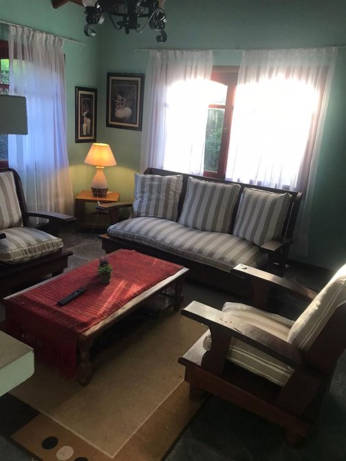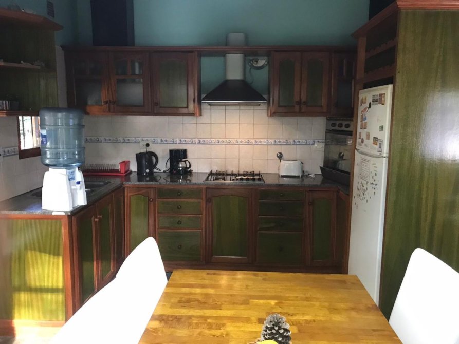 (Máximo 4 personas)  Cocina, Heladera con frizzer, horno eléctrico, cafetería, tostadora común, pava electrica y utensilios para 4 o 5 personas  living  TV dvd 32" con  cable  pieza matrimonial  cama 2 plaza  aire  acondicionado  tv smart  la  otra  pieza  con  ventilador  a techo. También queda  con wifi comedor, living, 1 baño completo + 1 toilette, Quincho con parrilla, cochera semicubierta al frente, parque con serv. de mantenimiento. Servicios:  luz, gas natural, DirecTv y SERVICIO WIFI, la propiedad posee el servicio de ALARMA MONITOREADA.