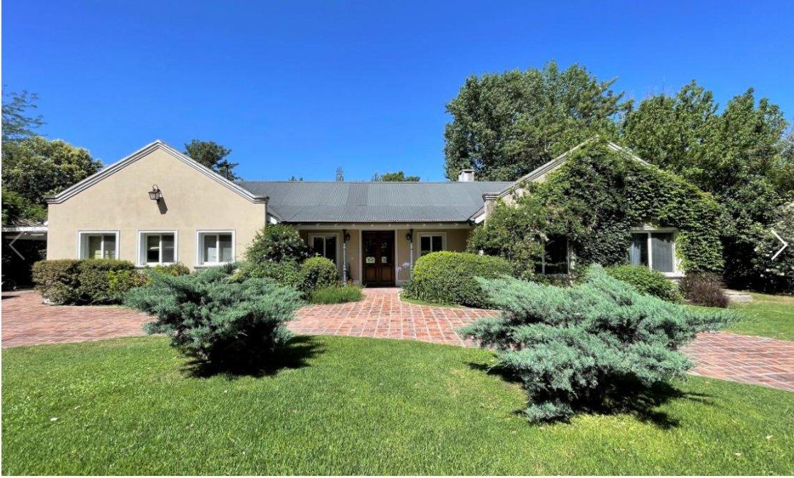 Solido chalet construido en su totalidad en planta baja, sobre un lote de terreno de importante metraje totalmente arbolado, con una ubicación estratégica, cerca de la entrada en una calle de estilo cul-de-sac.