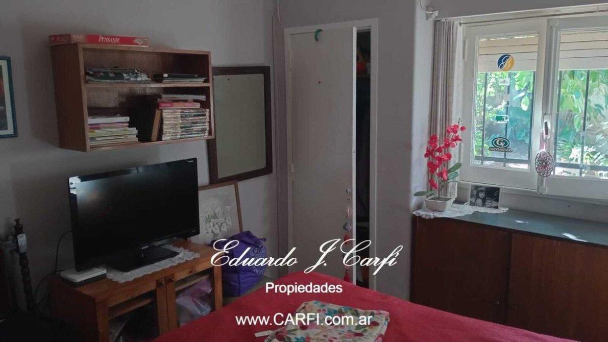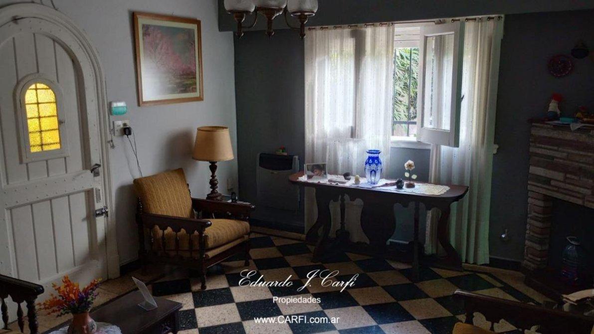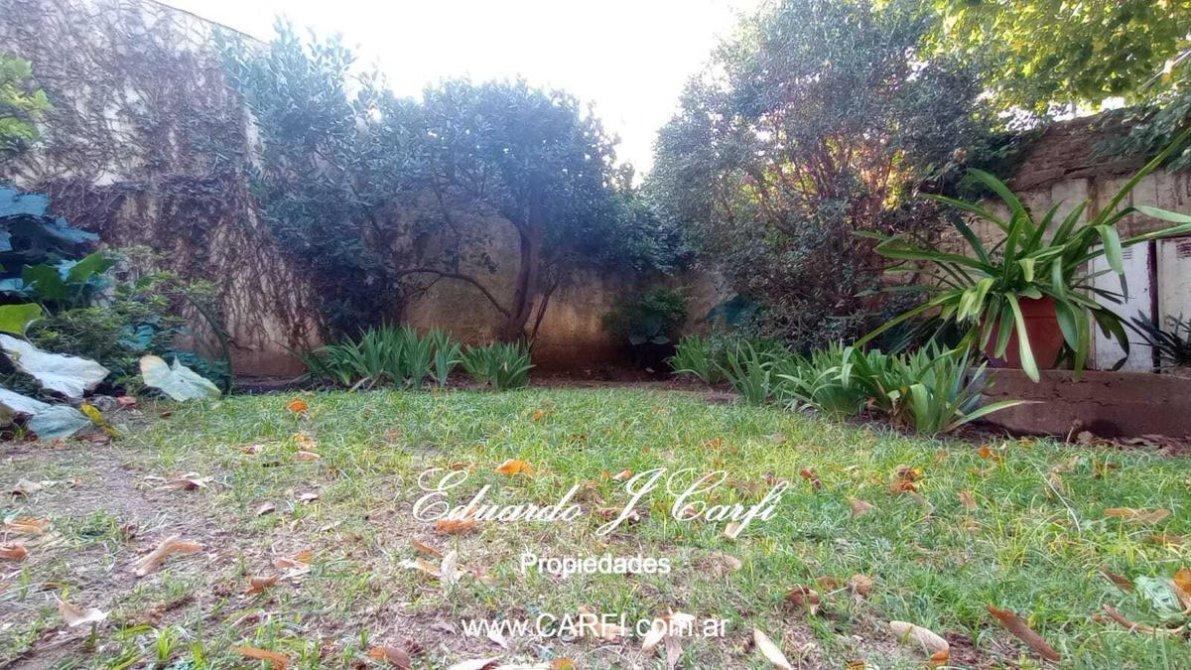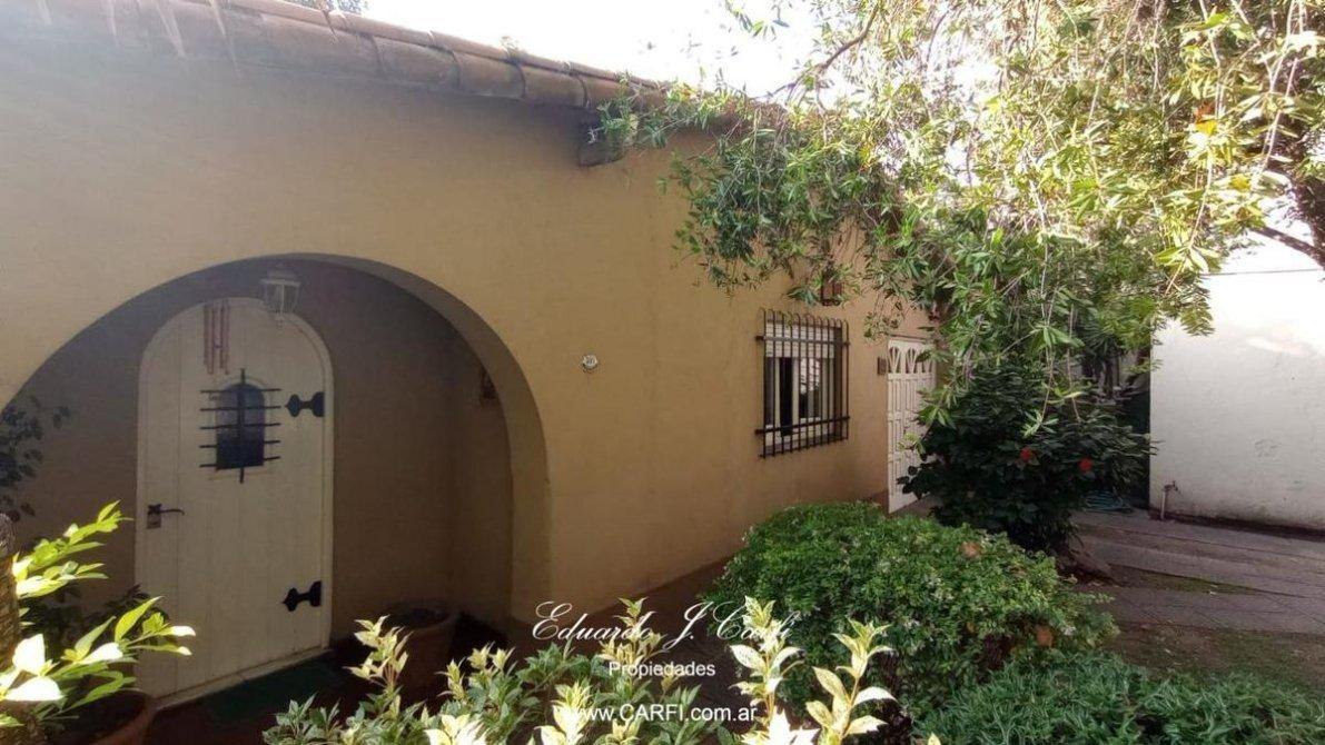 La propiedad cuenta con living comedor, cocina comedor, baño completo, dos dormitorios, amplia cochera con oficina y toilette, anteriormente utilizada como consultorio pediátrico.  Cuarto auxiliar con lavadero.  Jardín al frente y parque detrás. Cochera descubierta.