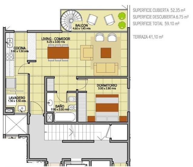 Superficie cubierta 52m2