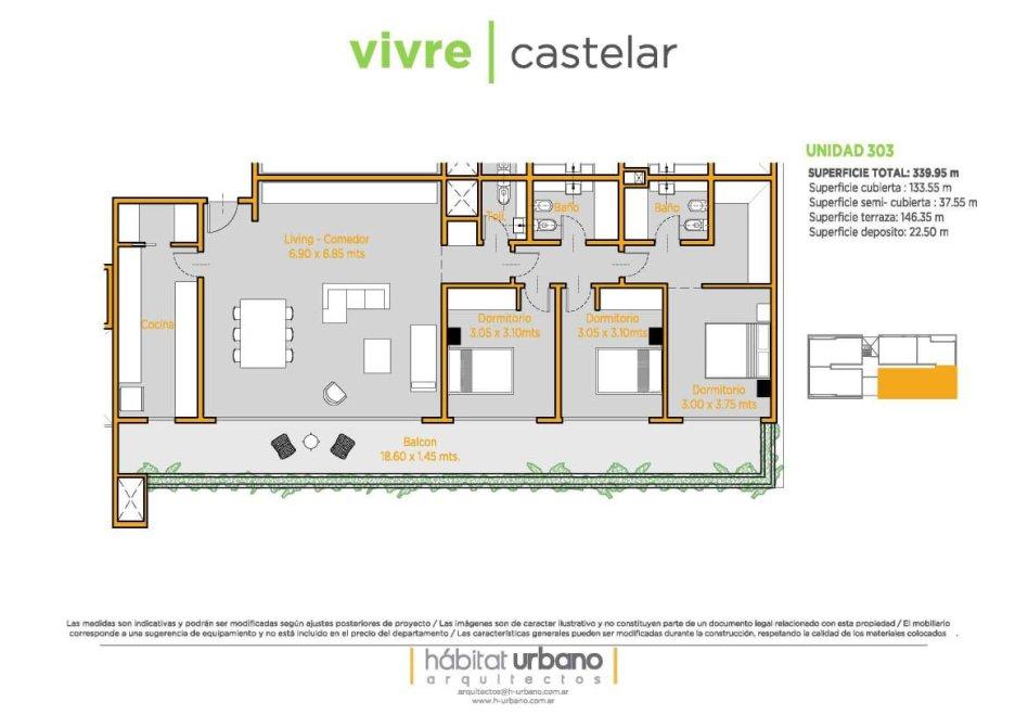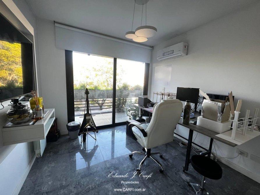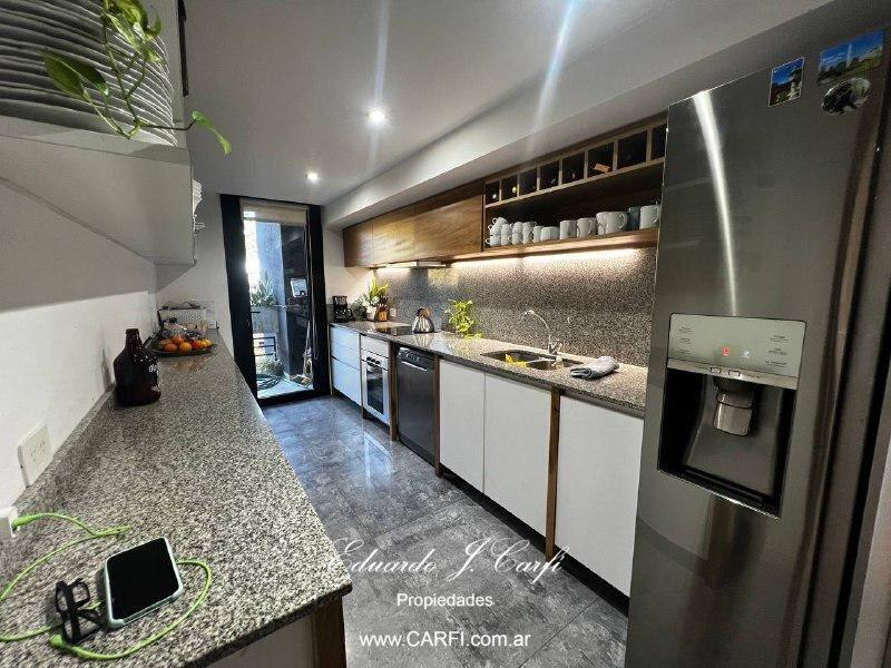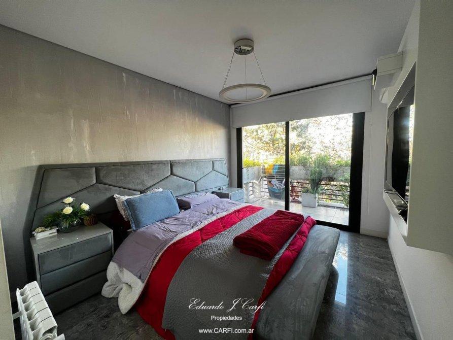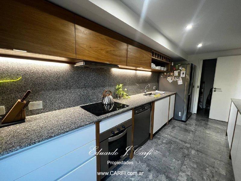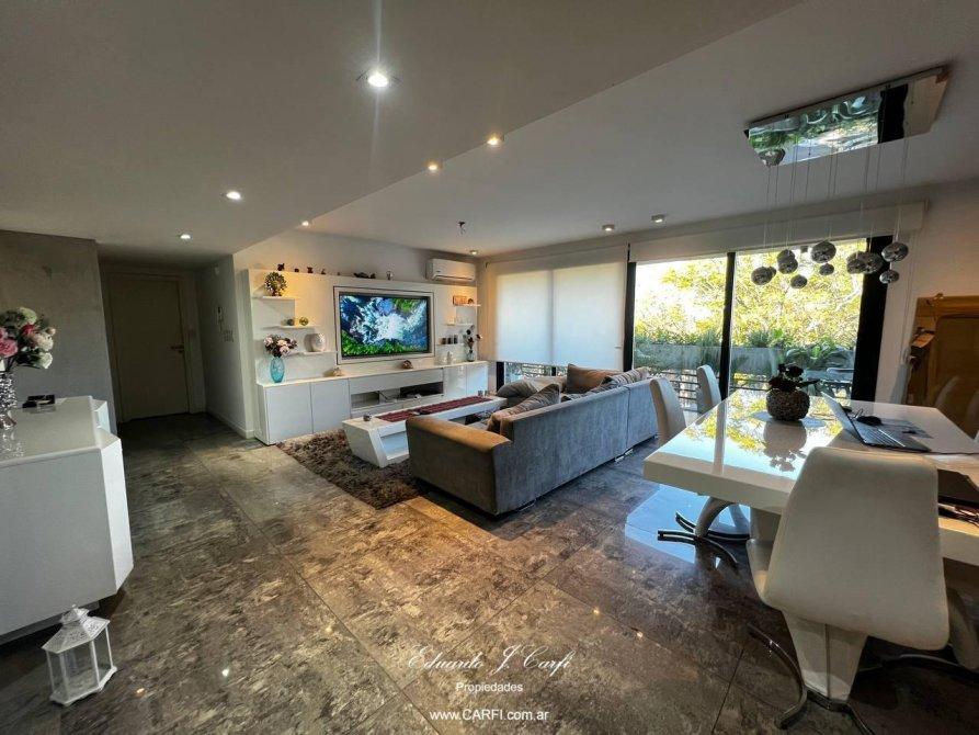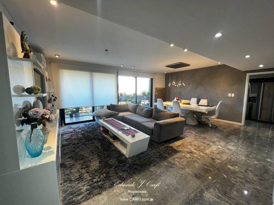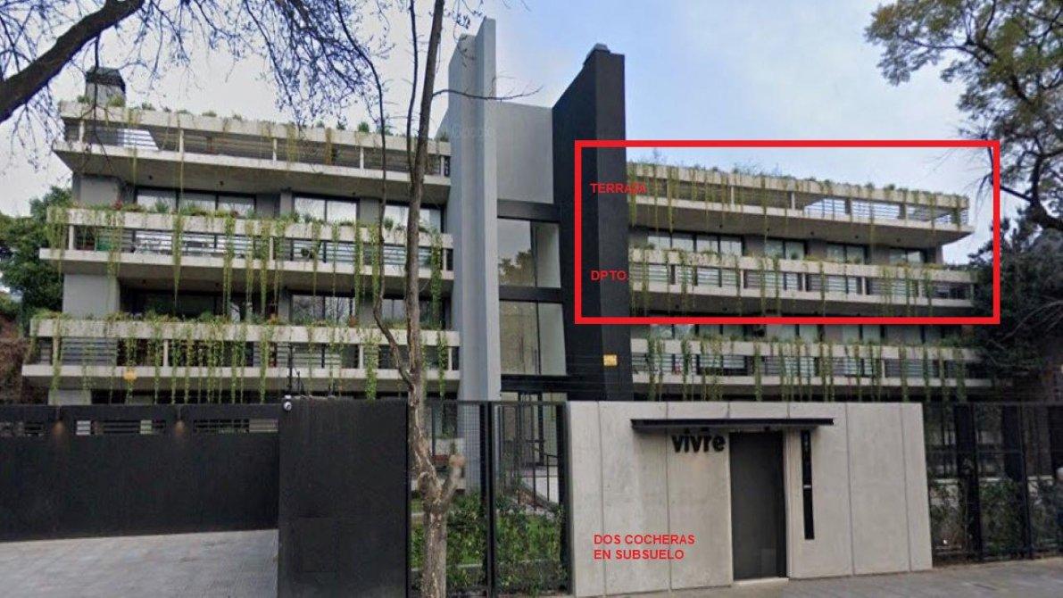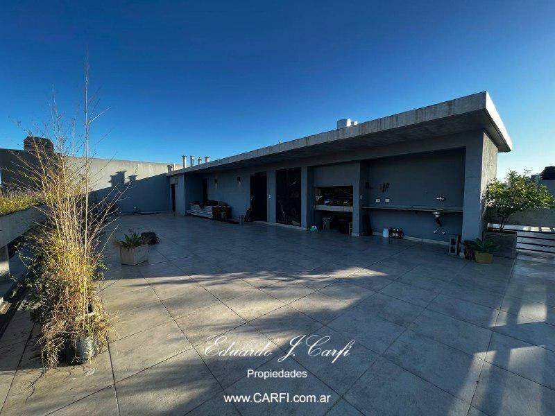 Ubicado a pocas cuadras de la estación de Castelar y a unos metros de la barrera de Zapiola, este moderno departamento se encuentra en el edificio VIVRE,  construído íntegramente en hormigón visto, con extensos balcones y amplios ambientes. De estilo moderno, con paredes de estuco y pisos de porcelanato, vidrios dobles y detalles de categoría. Cuenta con un gran living comedor, cocina independiente con doble mesada, lavadero,  toilette de servicio, bajo escalera con espacio de guardado, dos domitorios con placard, baño completo y suite con vestidor. Balcón corrido. La comodidad de tener el acceso desde el interior del departamento  a la amplia terraza, permiten disfrutar de la parrilla con mesada y bacha y una hermosa vista panorámica sin salir del departamento.  Posee dos cocheras cubiertas con bauleras. La propiedad cuenta con calefacción por radiadores, aire acondicionado individuales. La seguridad de vivir en un edificio pero con la comodidad de una casa.