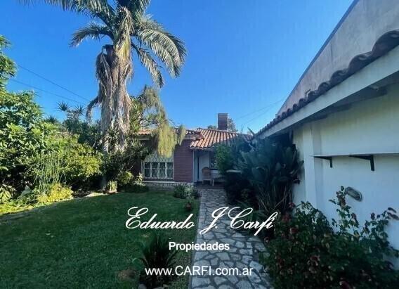 La propiedad se desarrolla en una planta y dispone de: living al frente con hogar, cocina comedor diario, dos dormitorios, un baño, dependencia o departamento incorporado de dos ambientes con cocina, baño y salida al quincho con parrilla. Posee cochera cubierta para tres autos y fondo con patio y dos depósitos.